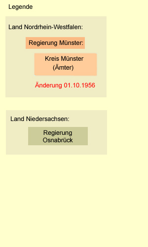 | 01.10.1956 | Ausgliederung von Teilen des Amtes St. Mauritz in die Stadt Münster | - |